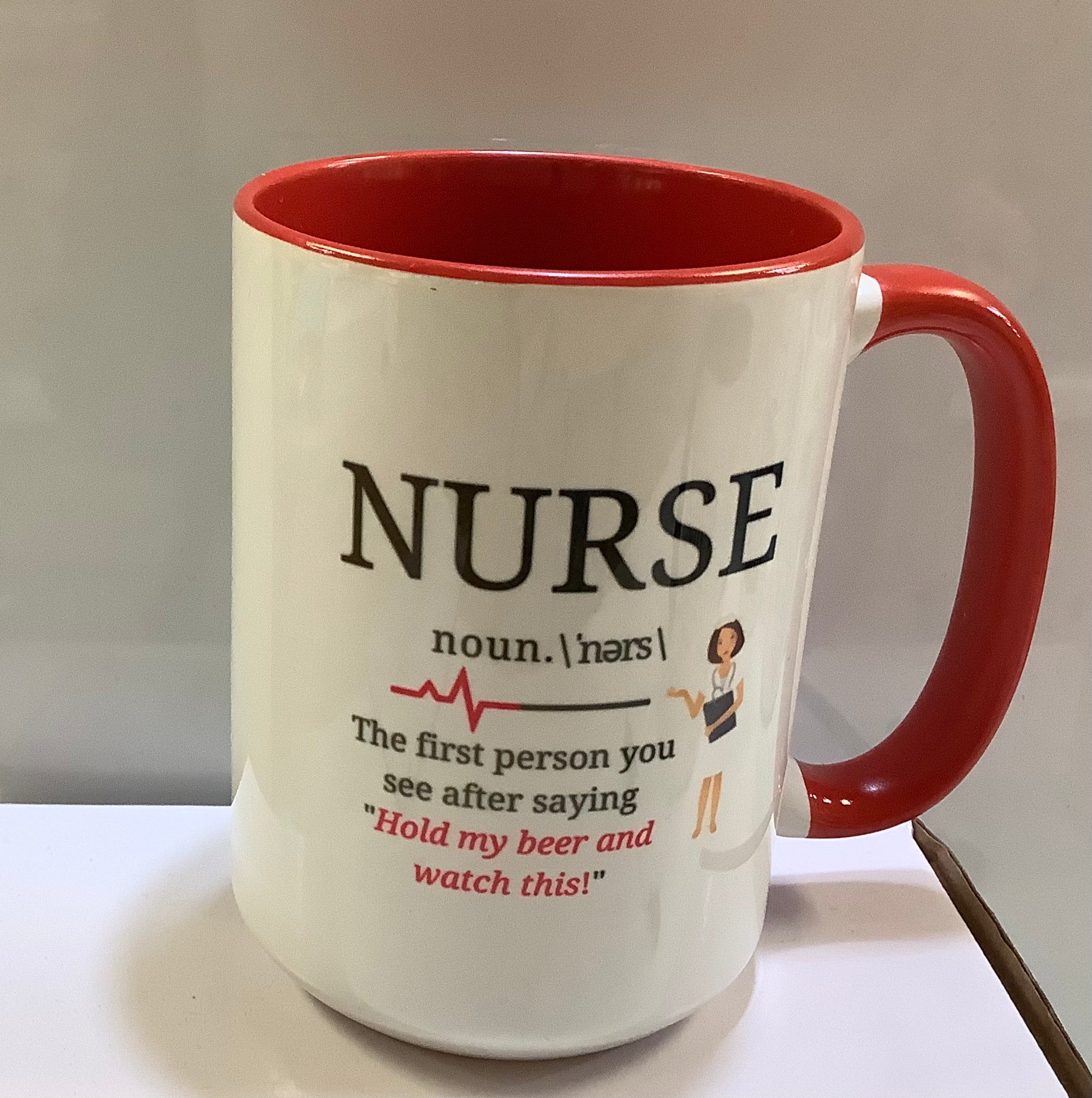 This bold and hilarious nurse definition mug is the perfect blend of humor and caffeine therapy. Featuring a playful dictionary-style definition and a bright red handle and interior, it’s made for nurses who’ve truly seen it all—and still show up with coffee in hand. Whether it’s for early shifts, night shifts, or that one more chart moment, this mug gets it.