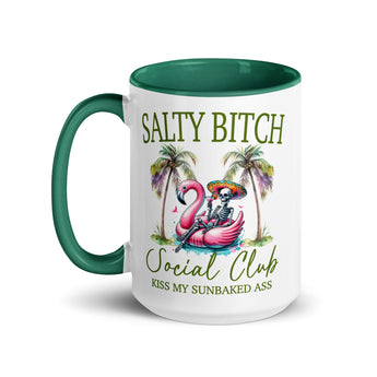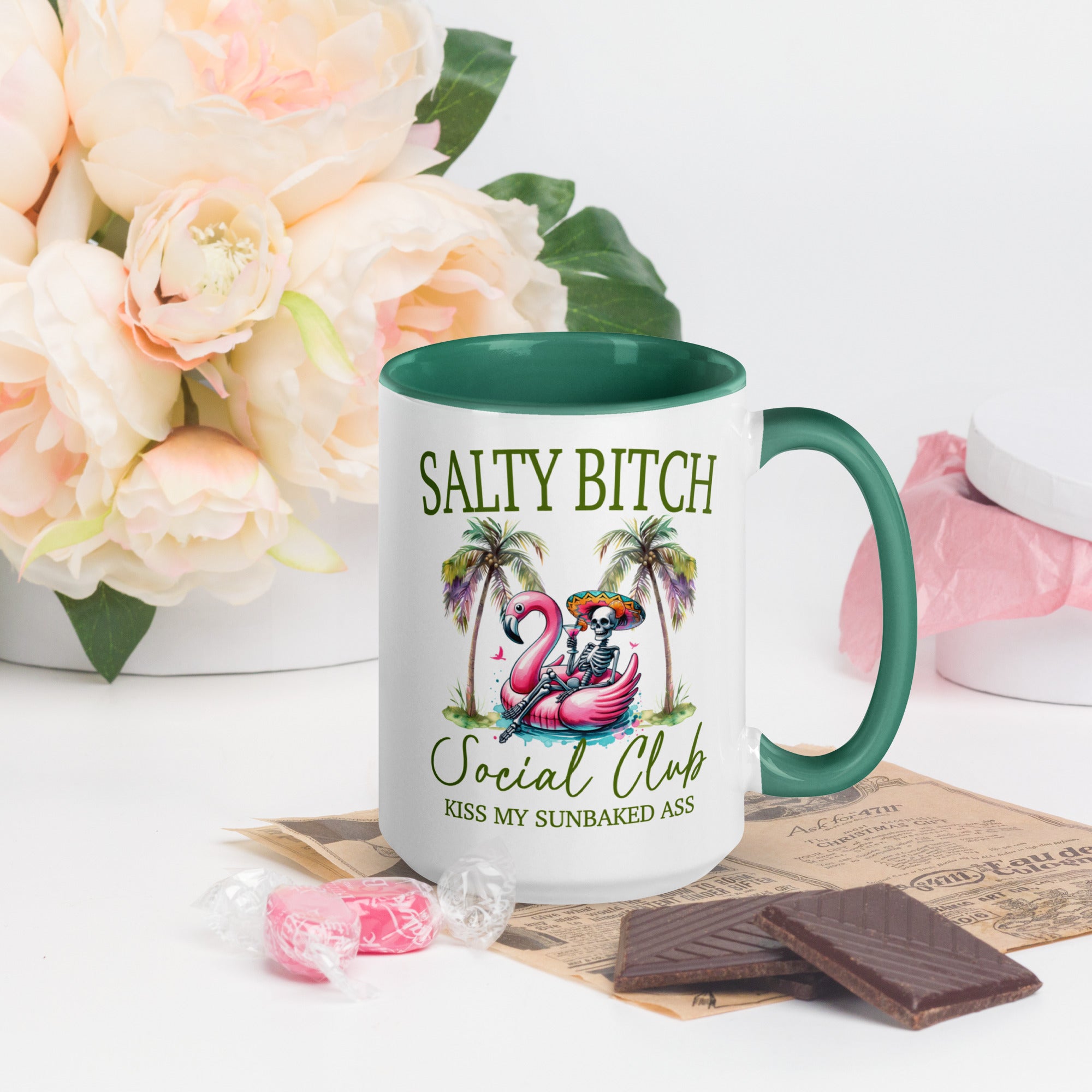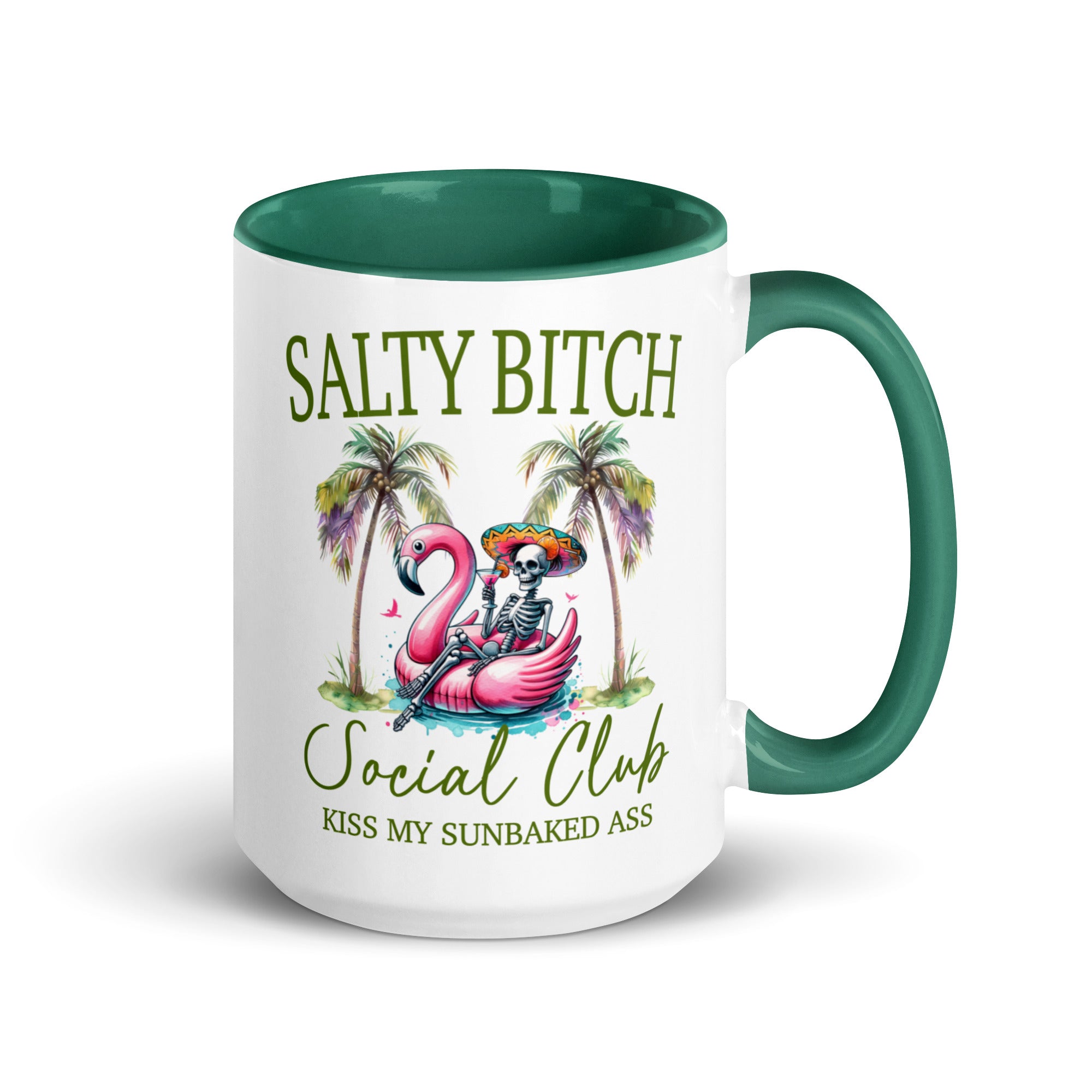 The Salty Bitch Social Club Coffee Mug brings bold beach energy to your daily coffee or tea ritual with a vibrant design, colorful green rim, handle, and interior, and unapologetic salty vibes. It’s the perfect mug for people who sip strong drinks and don’t sugarcoat their opinions.