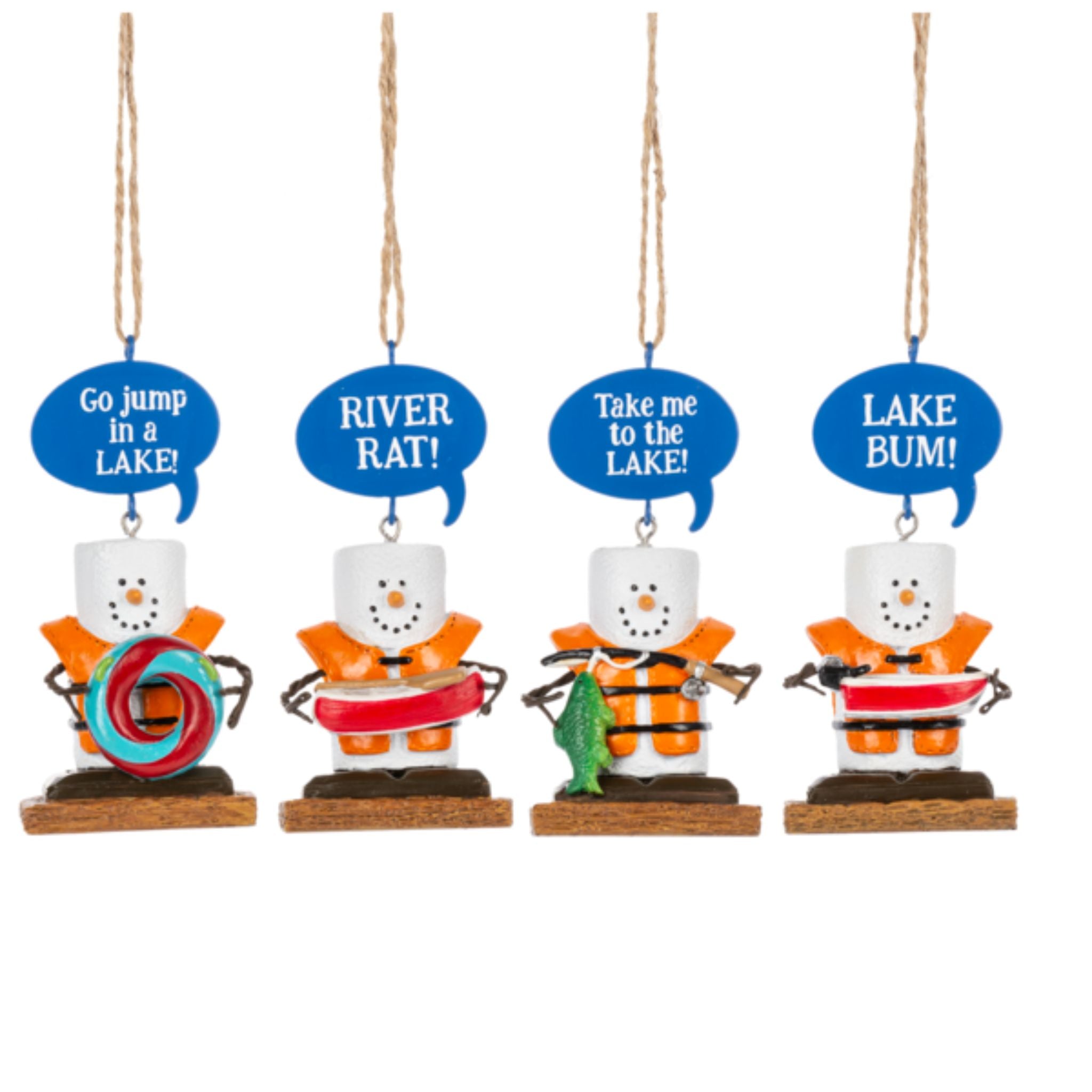 These quirky S’mores ornaments bring all the lake-day energy straight to your Christmas tree. Each little marshmallow buddy is rocking an orange life jacket and holding their favorite lake accessory — from a floatie to a fish — with a bold speech bubble that says exactly what they're thinking.