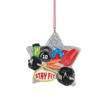 If the gym is their happy place (or at least the place they try to visit between holiday cookies), this Stay Fit Gym Ornament is the perfect little flex for the Christmas tree! Loaded with mini dumbbells, kettlebells, a rolled yoga mat, a barbell, jump rope, and energy drink, it's a fun tribute to anyone who loves a good workout.