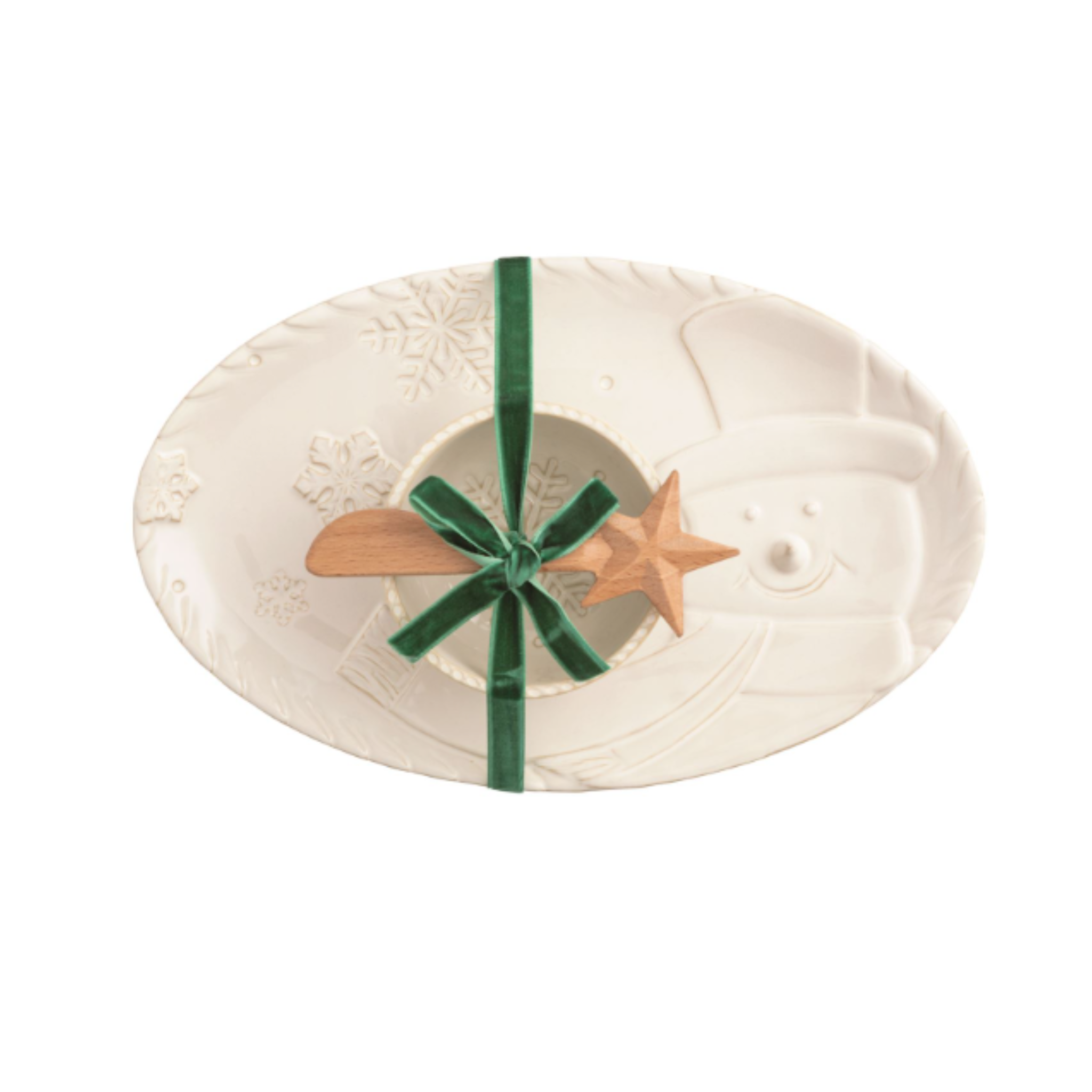 White Snowman Tray & Dip Set - Holiday Stoneware Serving Dish