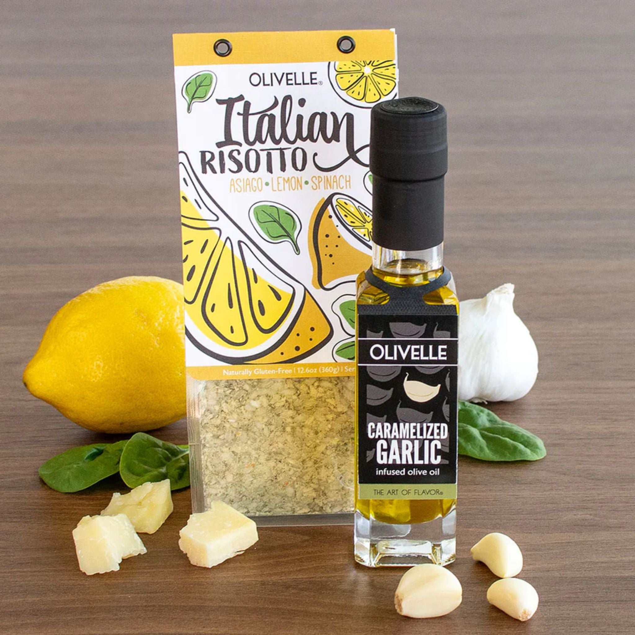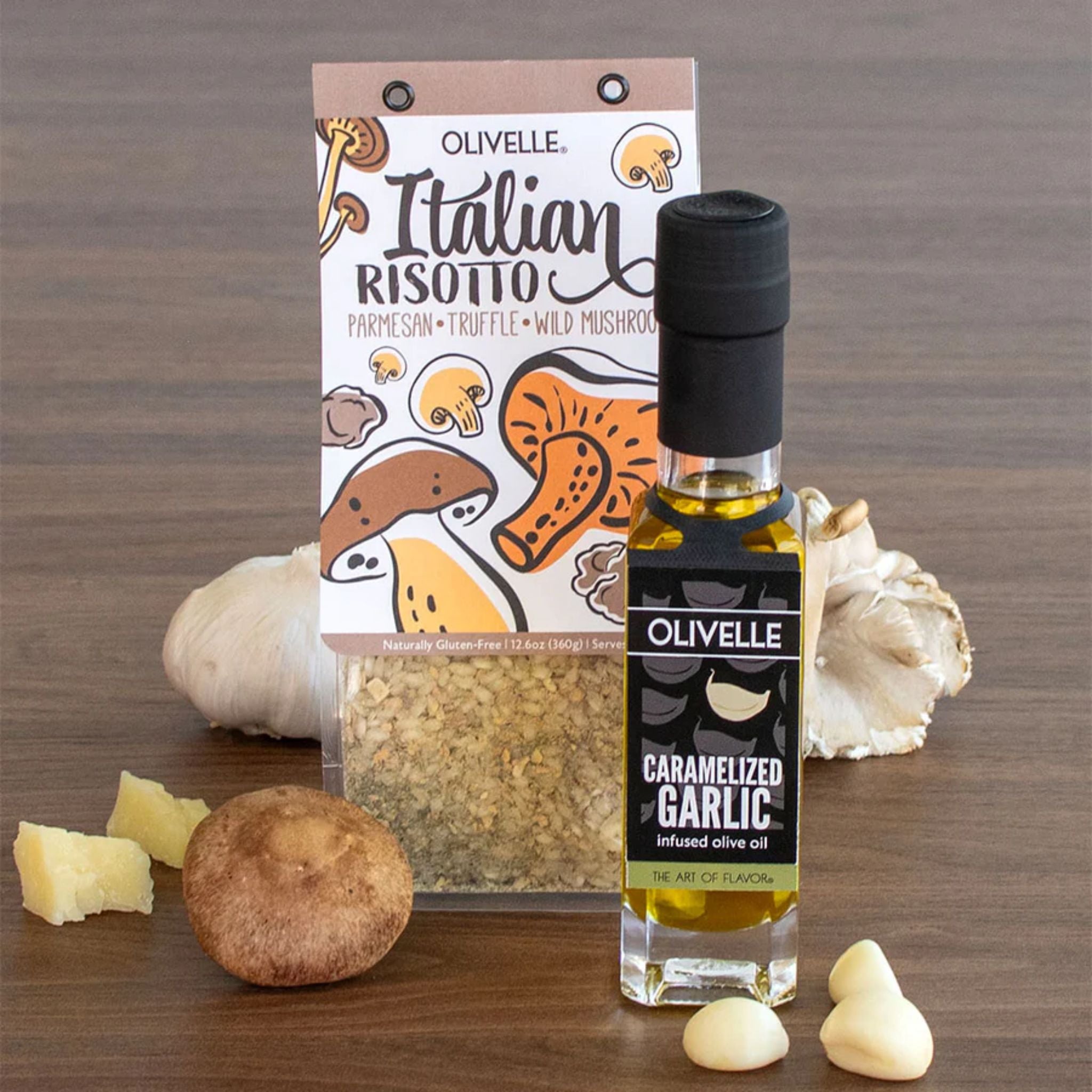 Give the gift of “WOW, you made that?” without any of the stress. This gourmet Risotto Gift Bundle brings together creamy, dreamy risotto and Olivelle’s fan-favorite Caramelized Garlic Infused Olive Oil for a dinner that tastes restaurant-level but cooks up surprisingly simple.