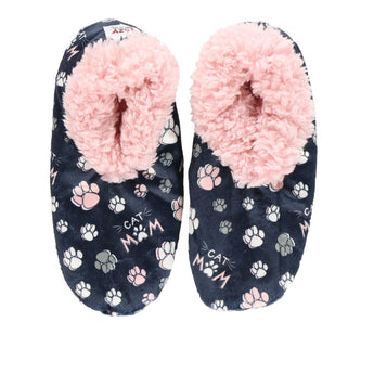 Being a great cat mom is hard work, so treat yourself to comfort with our Cat Mom Fuzzy Feet Slippers! These cozy slippers feature cute cat paw designs on dark blue fuzzy fabric with a blush pink fleece lining. With non-skid soles for safety and available in S/M and L/XL sizes, they're perfect for any cat mom looking to pamper her paws.