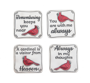 This Cardinal charm is a reminder that there are angels watching over us. The 1" square charm is the perfect size to keep close and carry in your pocket, purse or place on a shelf. Bring comfort and joy to someone you love with this meaningful gift!