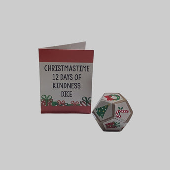 Roll your way to spreading joy this holiday season! This charming Christmas die features 12 different acts of kindness—just roll and discover your next good deed. Each die comes with an included insert card that reveals heartwarming kindness challenges perfect for the festive spirit. Whether you're looking to inspire daily generosity or add a playful twist to your holiday traditions, this delightful die makes giving back fun for the whole family. Sold individually, it's the perfect stocking stuffer or gift for kindness enthusiasts of all ages.