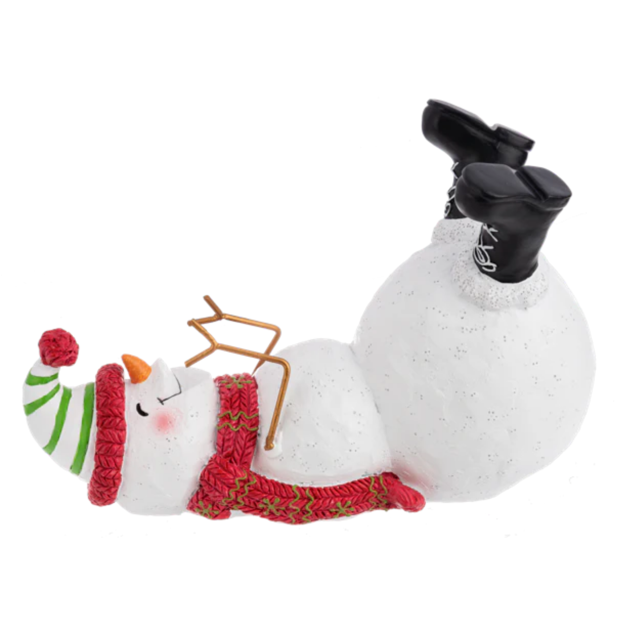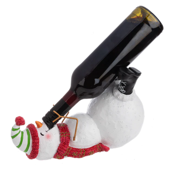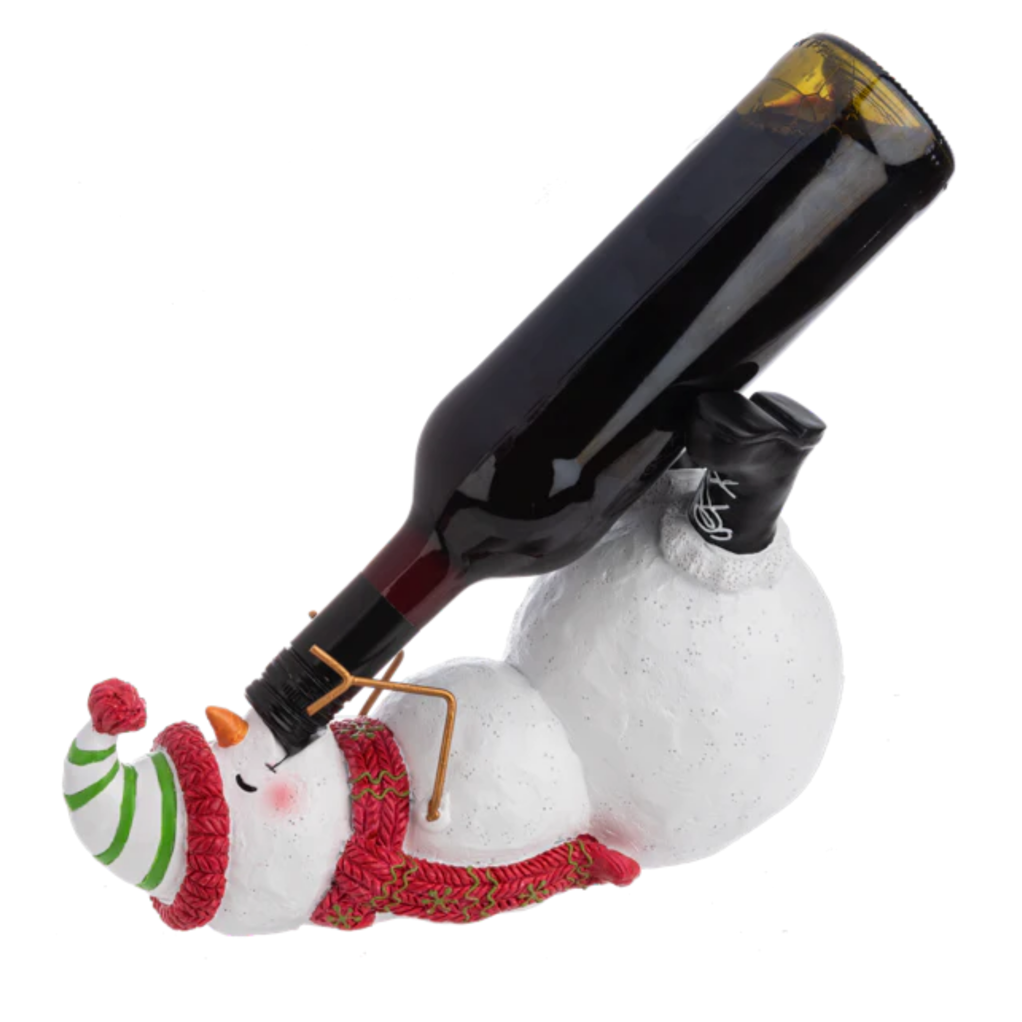 With his striped hat, red scarf, and little black boots kicked up in joy, he's the life of your holiday party. Whether you're hosting a Christmas dinner or gifting to your favorite wine lover, this frosty friend is the perfect conversation starter.