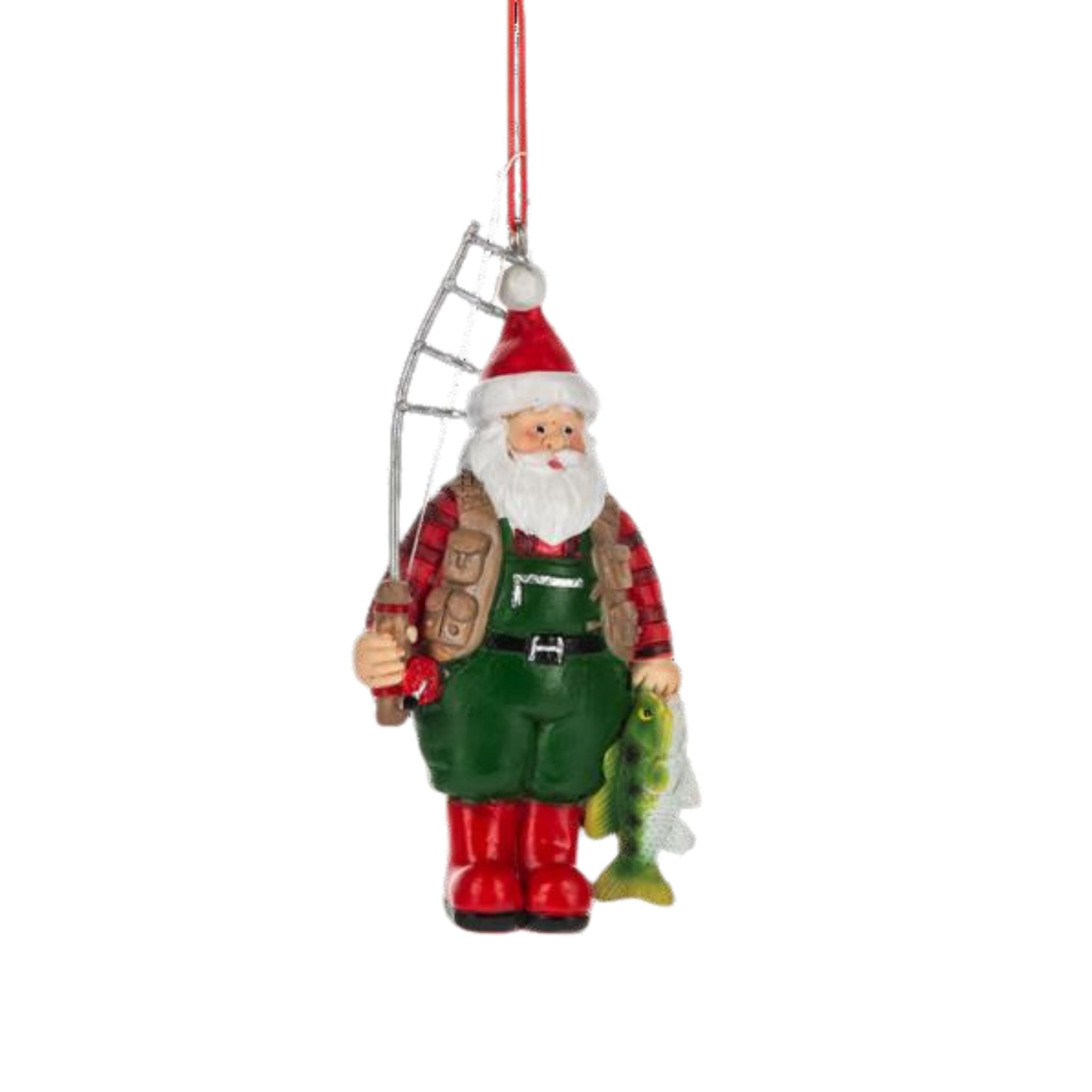 Looks like Santa traded his sleigh for a fishing boat! This Santa Fishing Ornament brings a charming outdoorsy twist to Christmas with Santa dressed in full fishing gear — waders, flannel, tackle vest, and all. In one hand, he’s holding his trusty fishing rod, and in the other? His freshly caught Christmas trout.