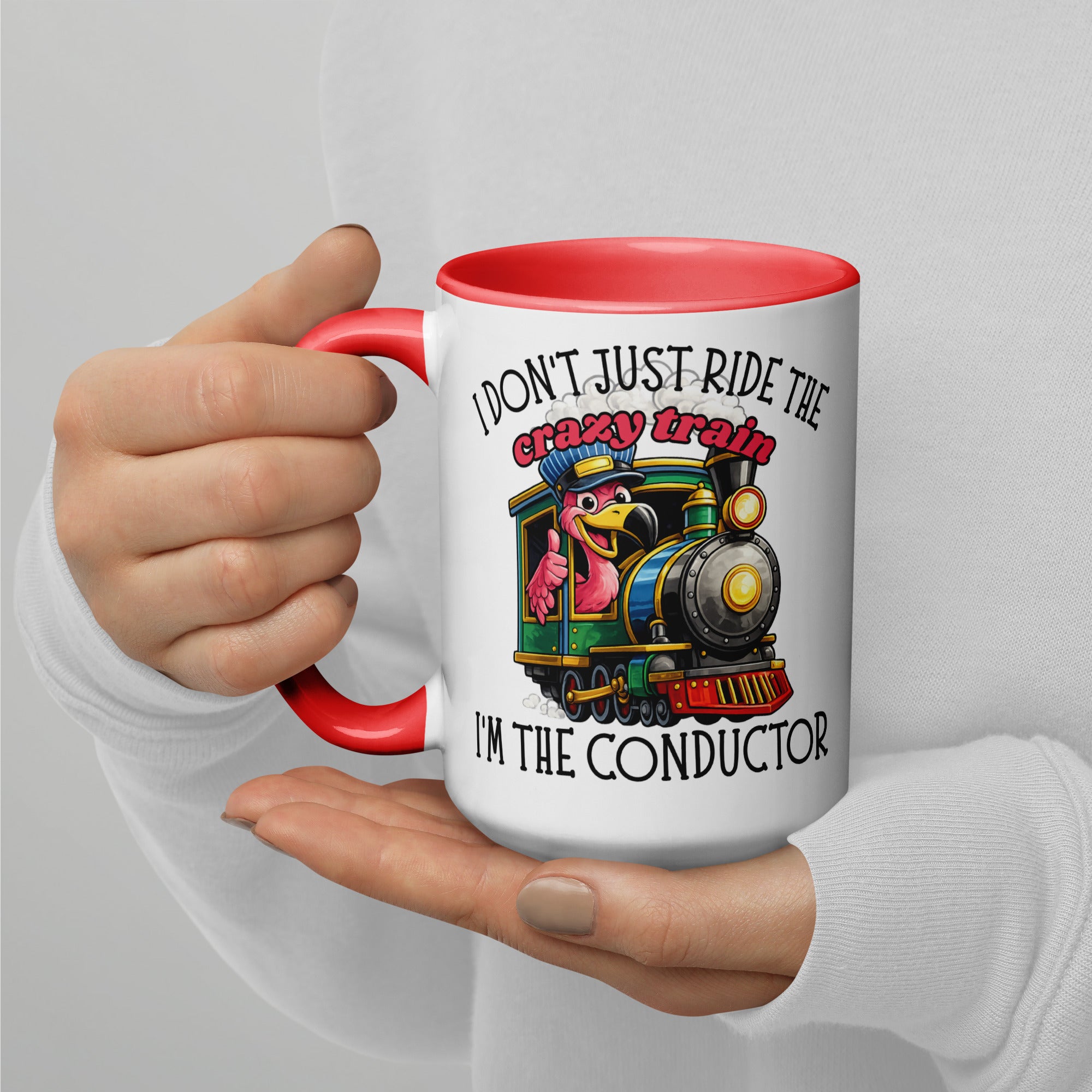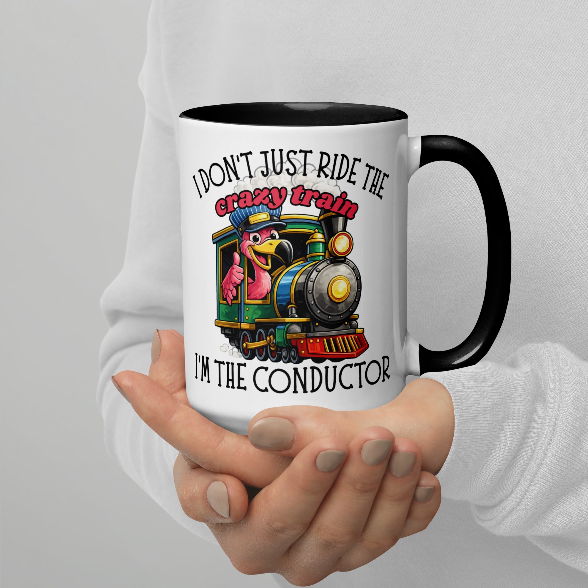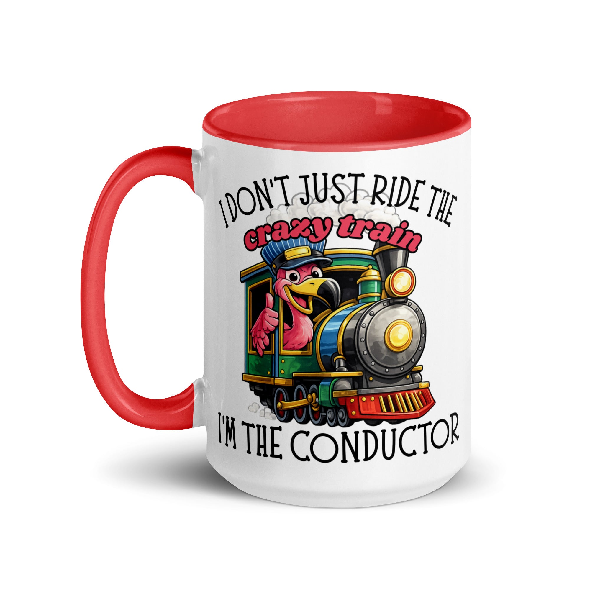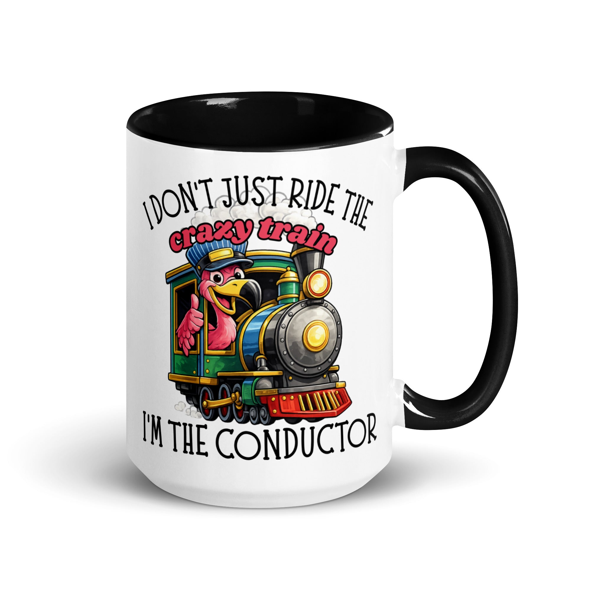 I Don’t Just Ride the Crazy Train… I’m the Conductor Coffee Mug | Funny Flamingo Mug