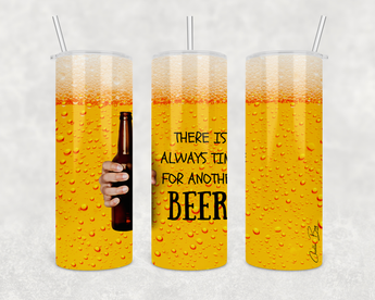 There's always time for another BEER funny drink tumbler features colorful beer background with a beer bottle in the design. These 20 oz stainless steel skinny tumblers make great gifts!