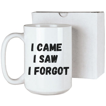 Wake up and conquer the day with this quirky "I came I saw I forgot" coffee mug. Perfect for any milestone birthday, this 15 oz ceramic mug is a fun reminder to approach life with a sense of humor. Don't forget your coffee - just like you forgot your age!