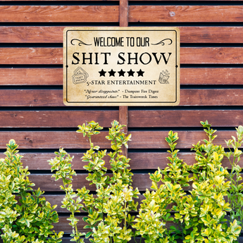 Welcome to our Shit Show Tin Sign - Funny 5-Star Entertainment Metal Wall Decor