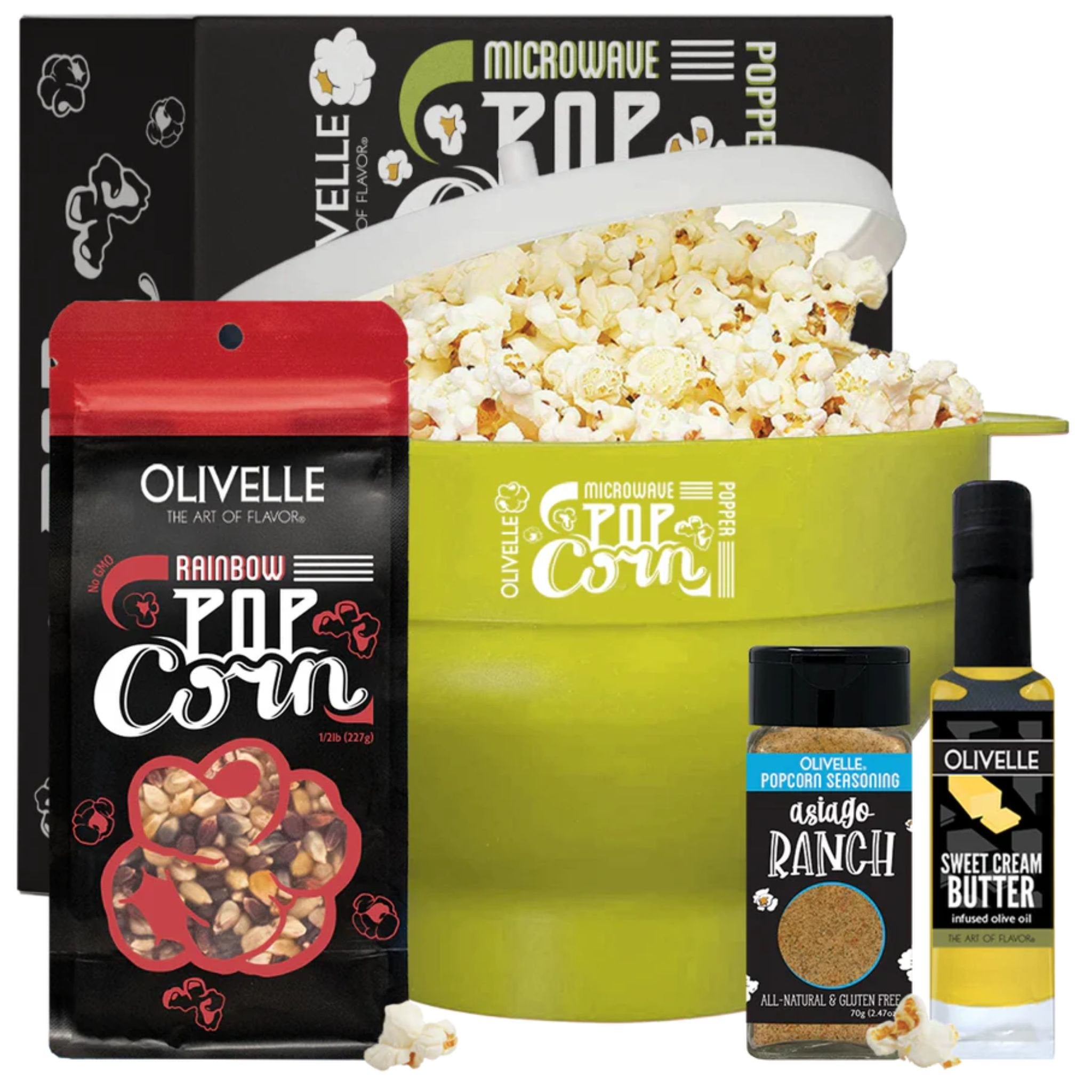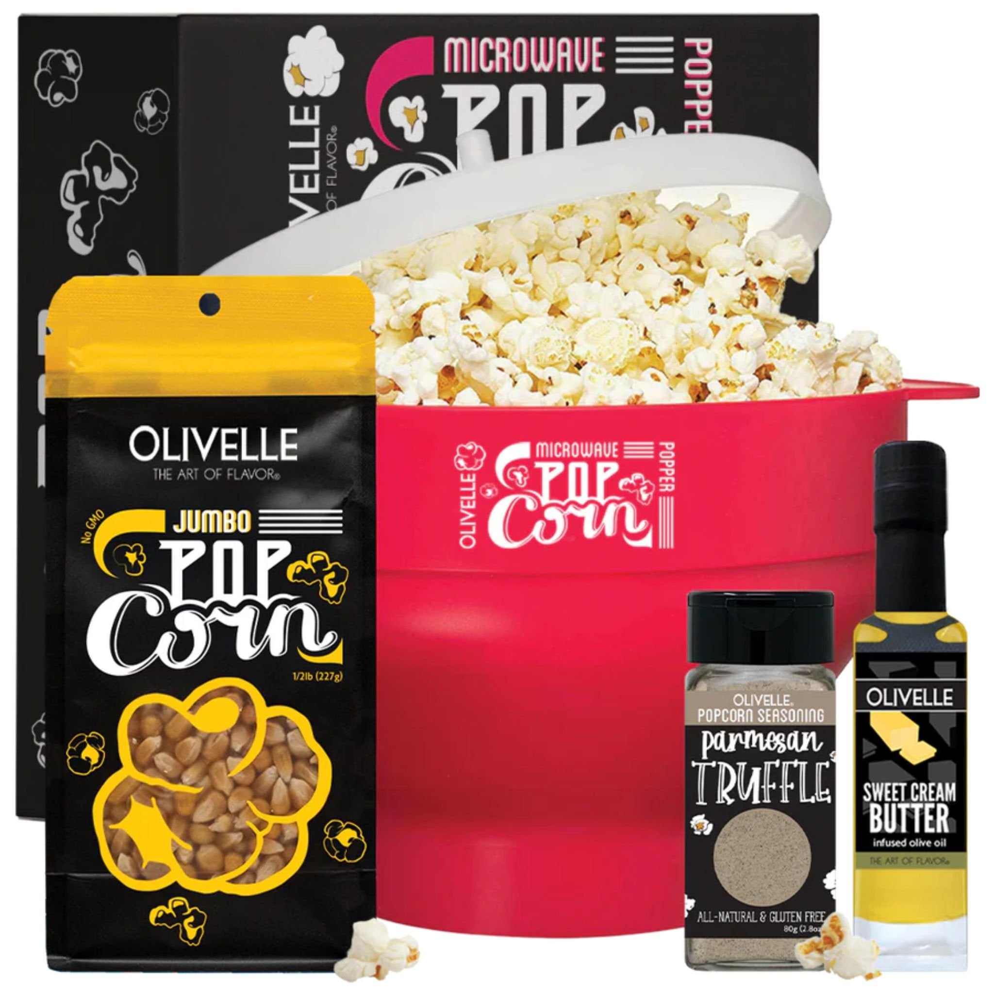 Our Olivelle Silicone Microwave Popcorn Popper makes fresh popcorn in minutes without the additives and oils found in microwave bags.