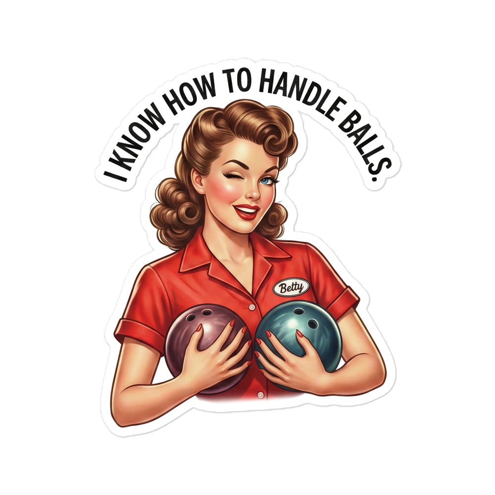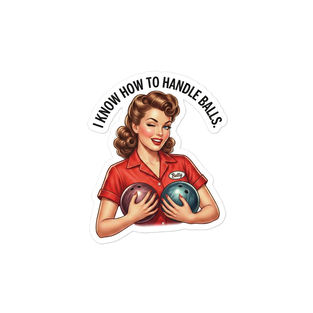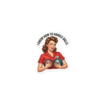 I know how to handle balls Retro Lady with Bowling Balls Sticker
