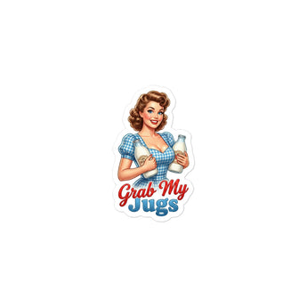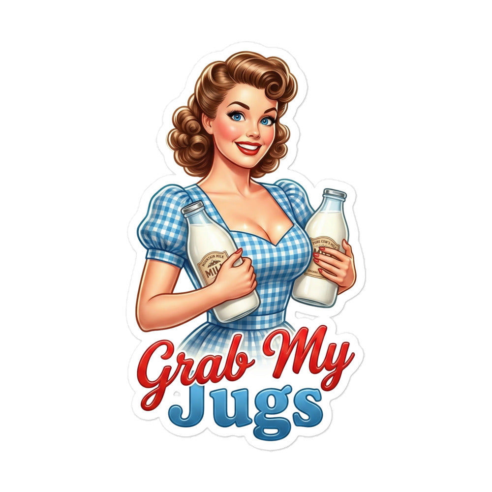 Grab My Jugs Funny Retro Lady Kisscut Sticker