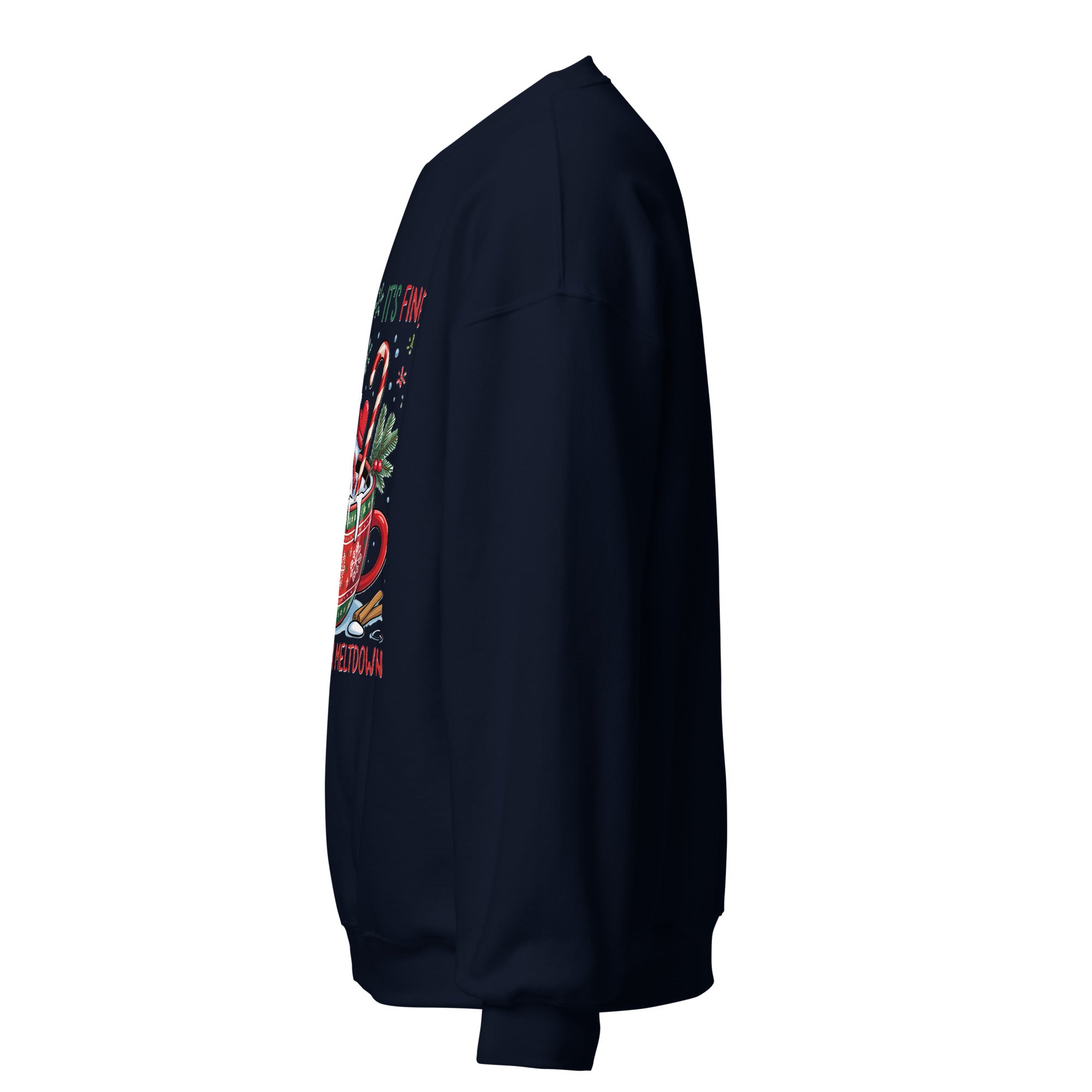Our "I'm Fine, It's Fine, Just Having a Meltdown" Christmas Sweatshirt perfectly capture those holiday feels - cozy, chaotic, and just a little melty. Featuring a snowman soaking in a festive coffee mug with a candy cane, this fun graphic sweatshirt brings the laughs to every family gathering, cookie-baking night, or gift exchange.
