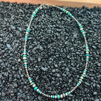 A beautiful blend of shine and stone. The sterling pearls pair perfectly with genuine turquoise for a soft, balanced Western look.
