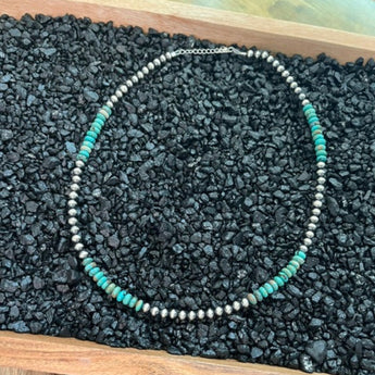 Simple, clean, and absolutely stunning. The mix of genuine 5mm sterling silver pearls and 6mm turquoise stones gives this necklace the perfect Western-chic balance.