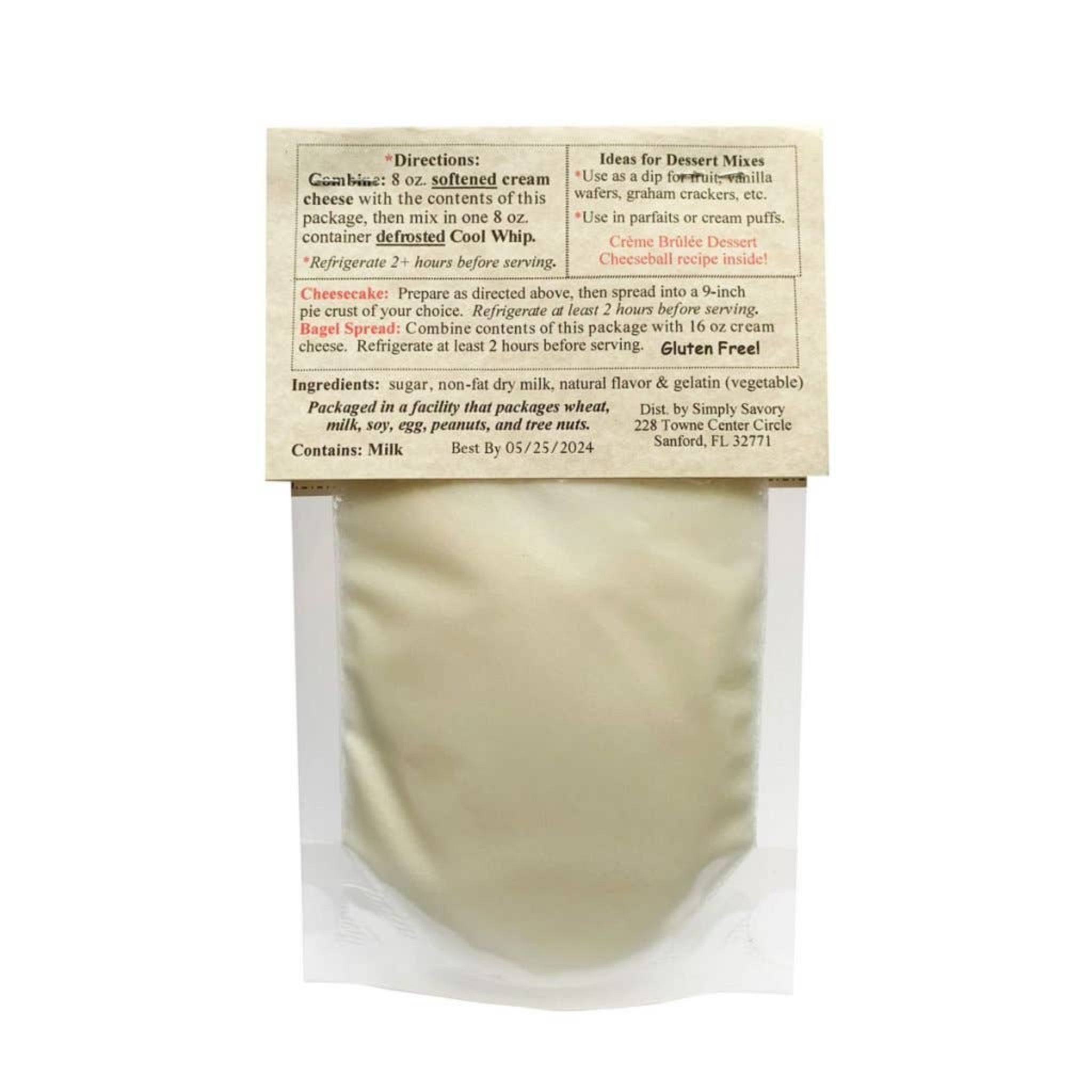 Make it as a dip, whip it into a no-bake cheesecake, spread it on bagels (yes, dessert for breakfast is a thing), or roll it into a Crème Brûlée Dessert Cheesecake Ball using the recipe included inside. Gluten free, small-batch crafted, and no MSG — just pure, decadent goodness.
