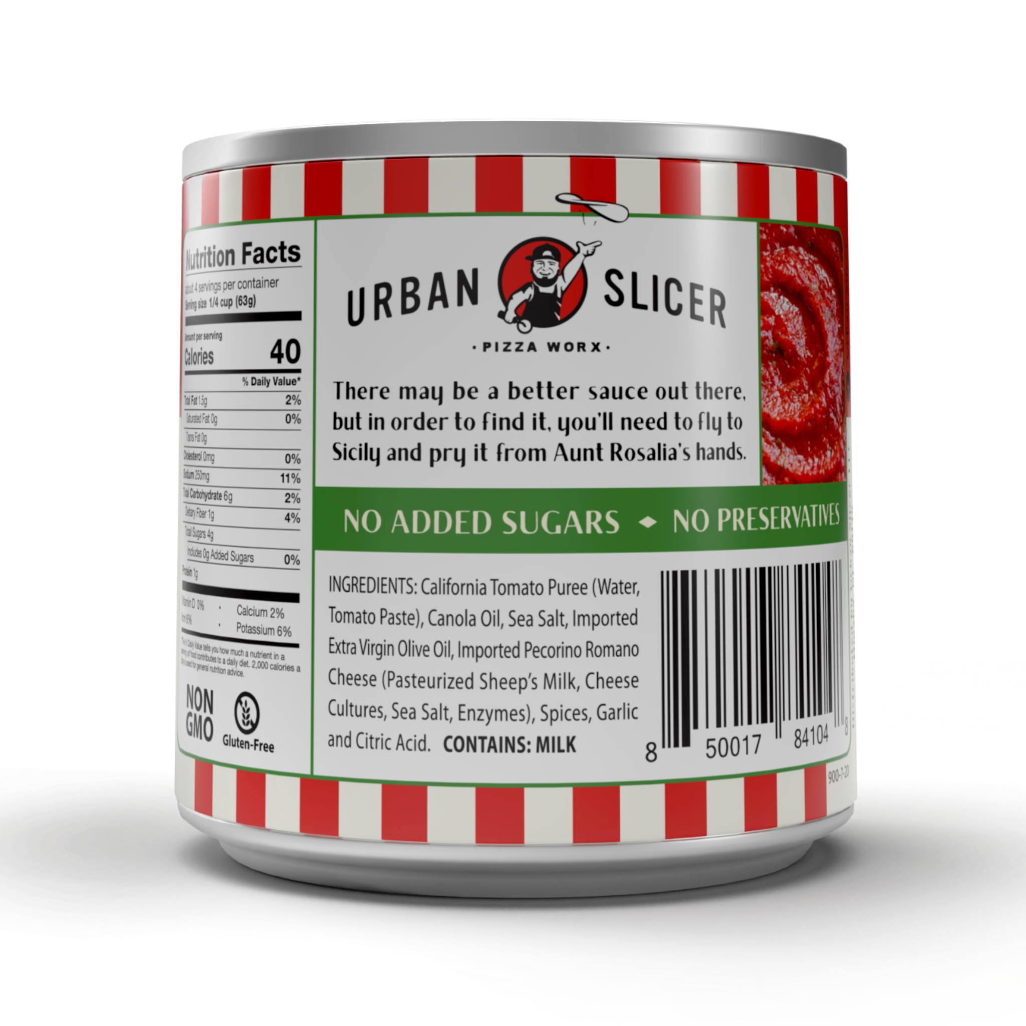 Urban Slicer Pizza Sauce is rich, robust, and crafted to taste incredible on any style of pizza — from Neapolitan to Detroit-style, deep dish to pan pizza. Each can makes TWO fully loaded pizzas, so whether it’s family pizza night, a backyard party, or a DIY pizza bar, you’re covered.