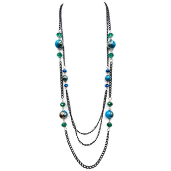 Necklace: Black Crystal Pearl Long Layered Necklace Ocean Blue