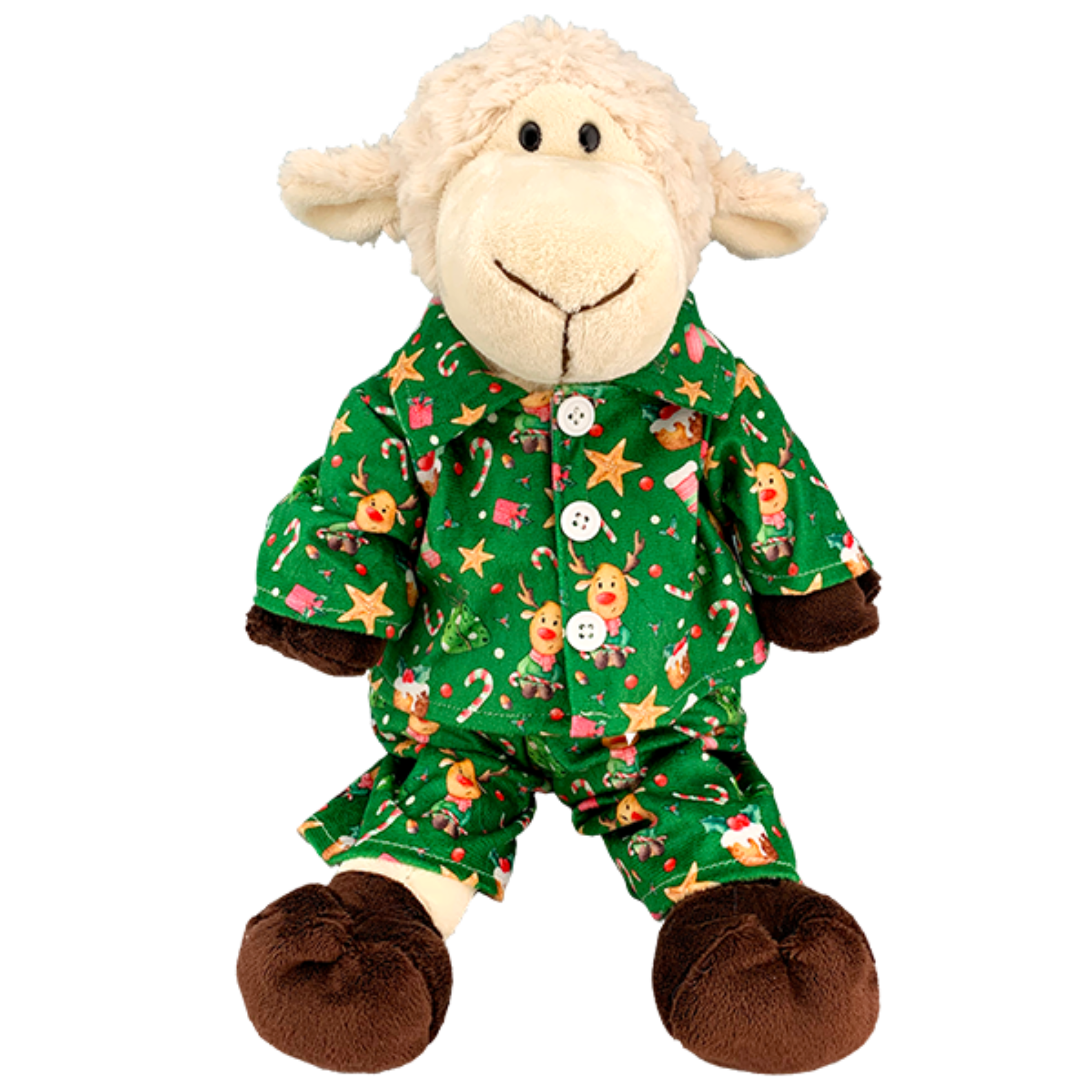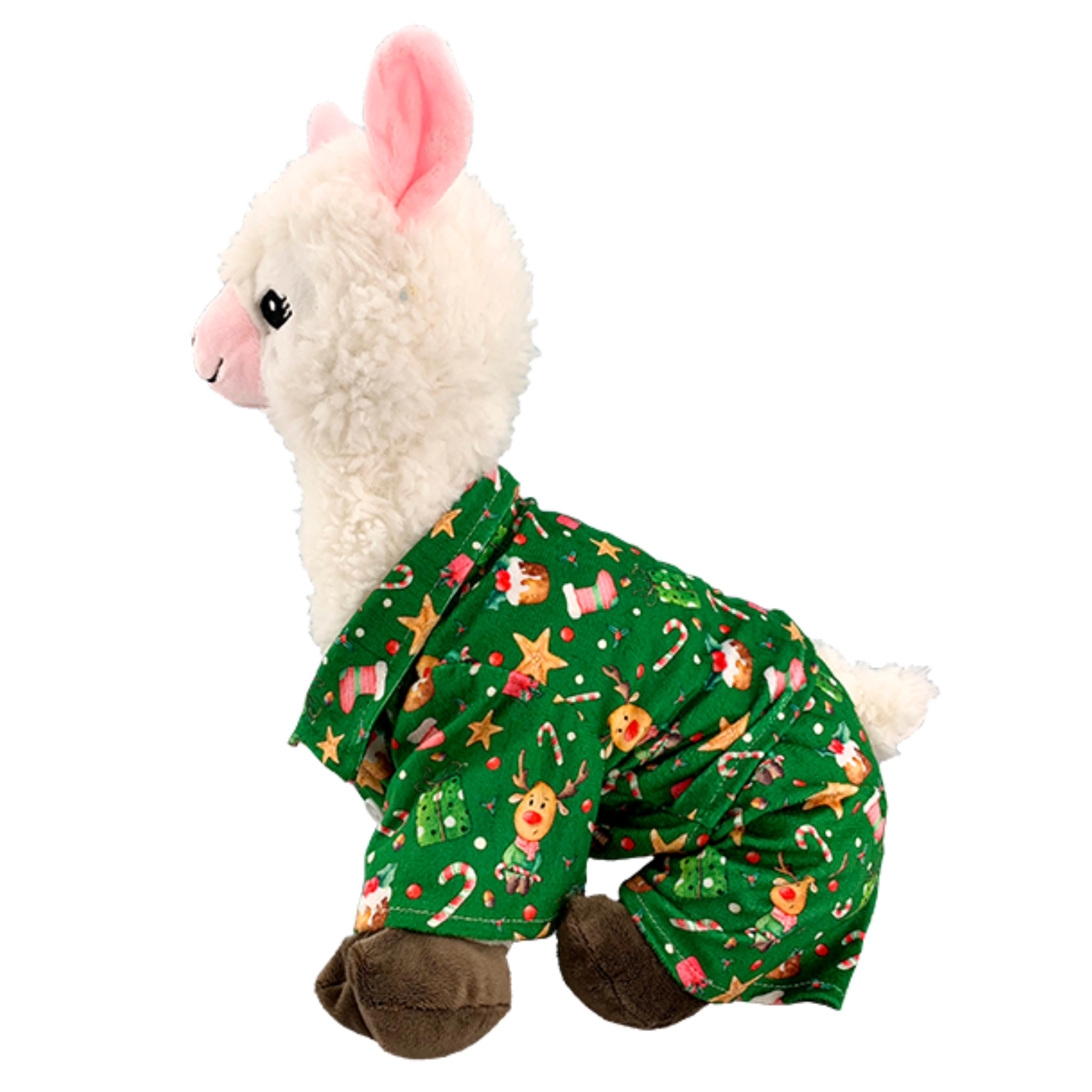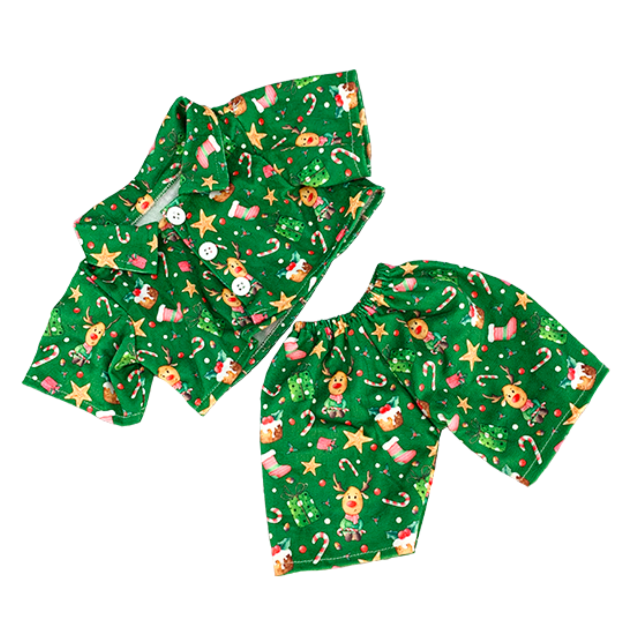 Cozy up your plush in holiday style! These 16" Green Reindeer PJ's are made from soft flannel with an adorable reindeer design. Perfectly sized for 16-inch stuffed animals, they're a festive way to dress up your cuddly friend for Christmas mornings, bedtime snuggles, or holiday photos.