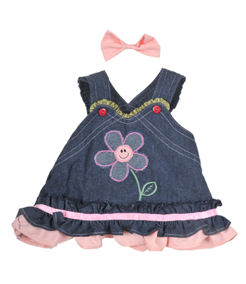 Introducing Frannie's Denim Dress with hair bow: your furry friend’s go-to style statement! This one-of-a-kind ensemble has it all - denim dress with an applique smiling flower and a matching teddy bear hair bow - perfect for the 16" stuffed animal that's looking for a little 'pick-me-up'! Get your paws on this peace of cuddly couture ASAP!