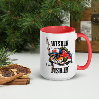 Wishin' I Was Fishin' Coffee Mug - Funny Fisherman 15 oz mug